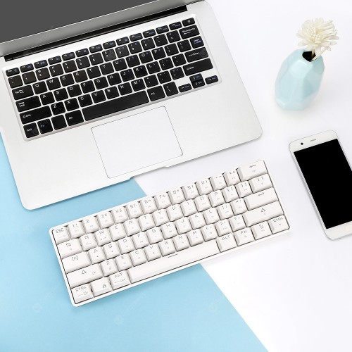 DK61 Desktop Wired Wireless Blue Switch 61 Keys Keyboard RGB Backlight for Home Game Office- White