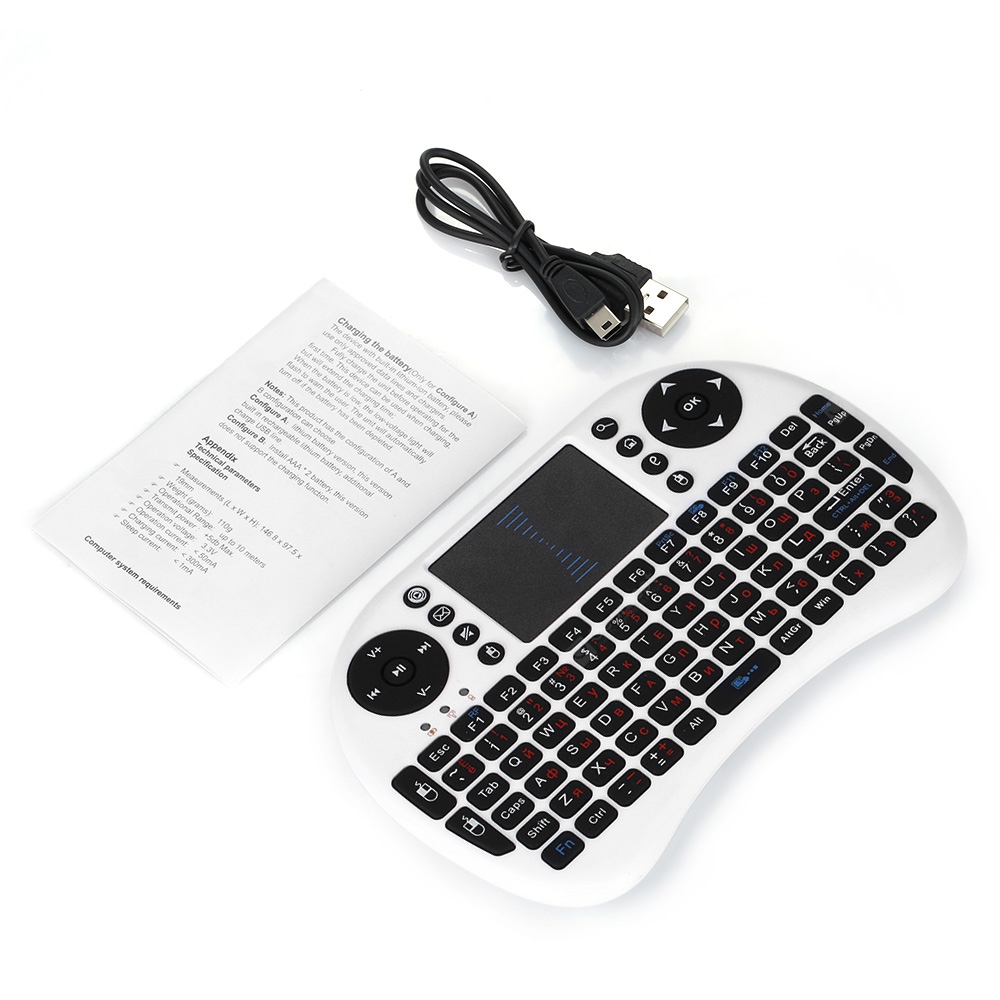 Product Detail | Model: I8MS Material : ABS Interface: USB 2.0 Connection Type: 2.4GHz Wireless Product Features: Air Mouse Powered by: Lithium-ion Battery Suitable for: Android TV,PC Charging Time: 2h Battery Capacity (mAh): 1020mAh |